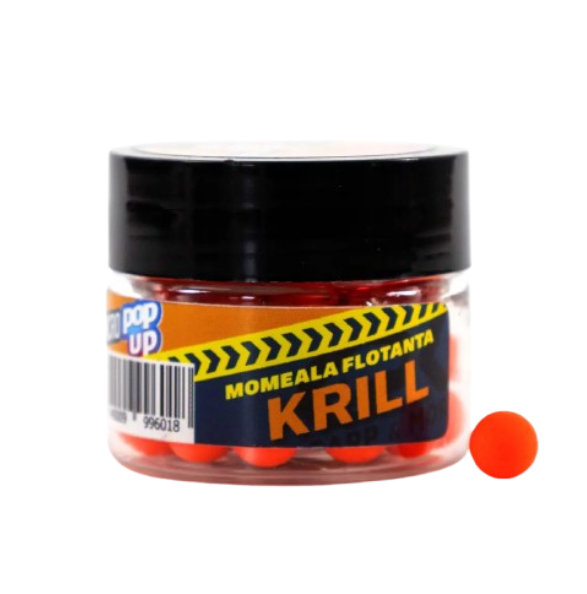 Momeală flotantă de tip pop-up, cu aromă naturală de krill. Aroma proteică puternică atrage crapii mari și peștii activi chiar și în condiții dificile. Pop-up-ul își păstrează flotabilitatea ore întregi, fiind ideal pentru prezentări selective.